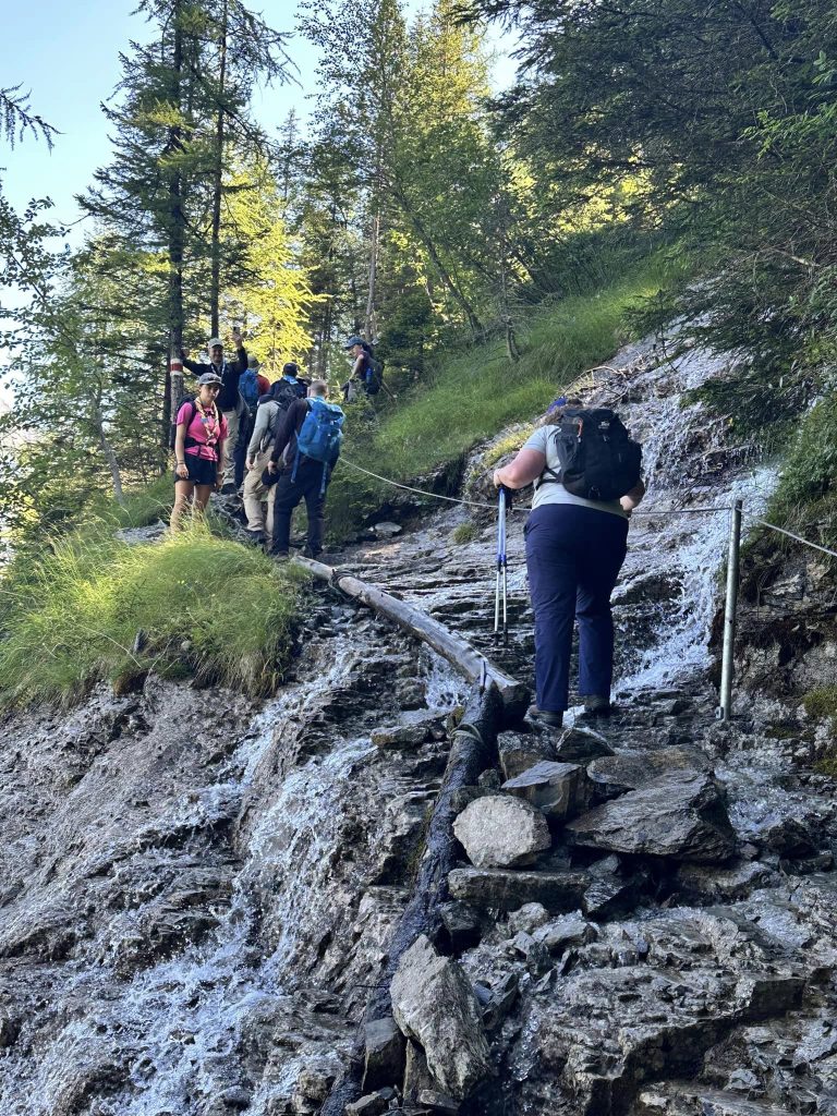 The group also embarked on a challenging mountain hike, trekking through pine forests, crossing crystal-clear streams, and tackling steep trails leading to breathtaking viewpoints. The hike tested their endurance, but the reward at the top—a stunning view of the Alps—made every step worthwhile. They took a well-earned break at a mountain hut, enjoying their packed lunches while basking in the serene beauty of the mountains.