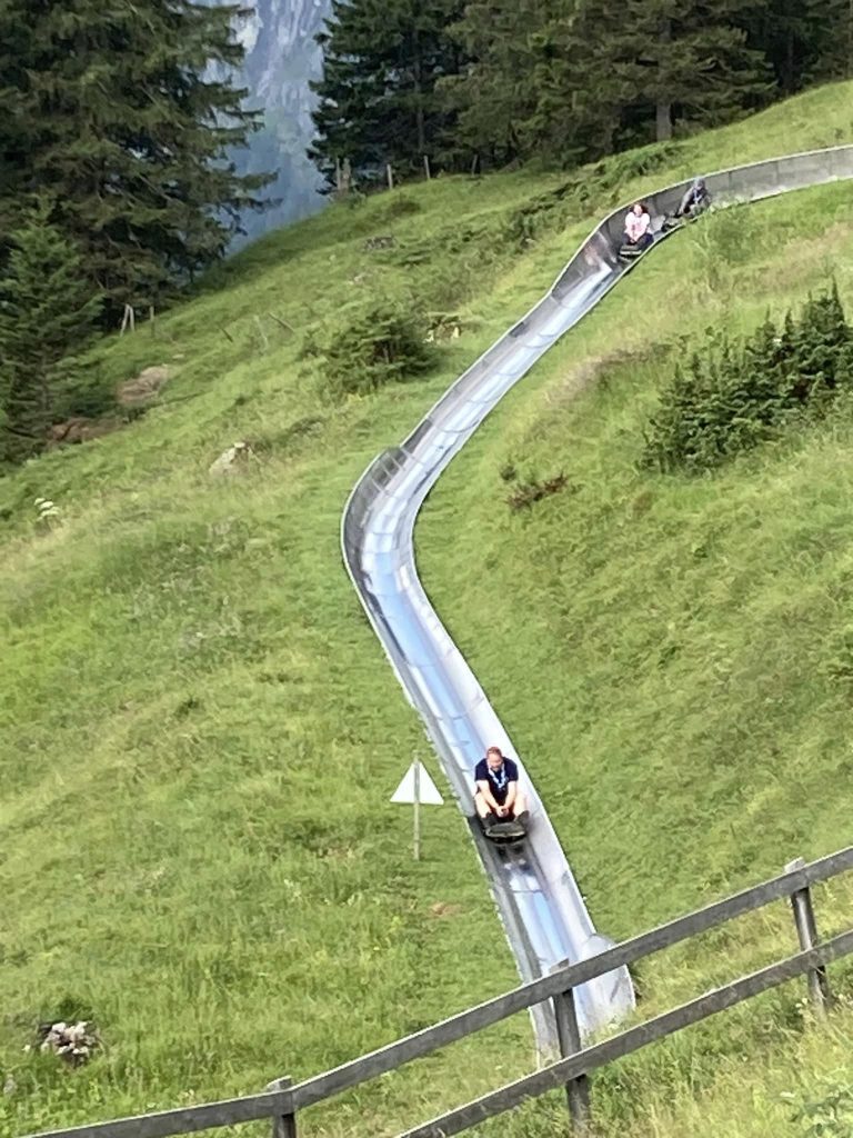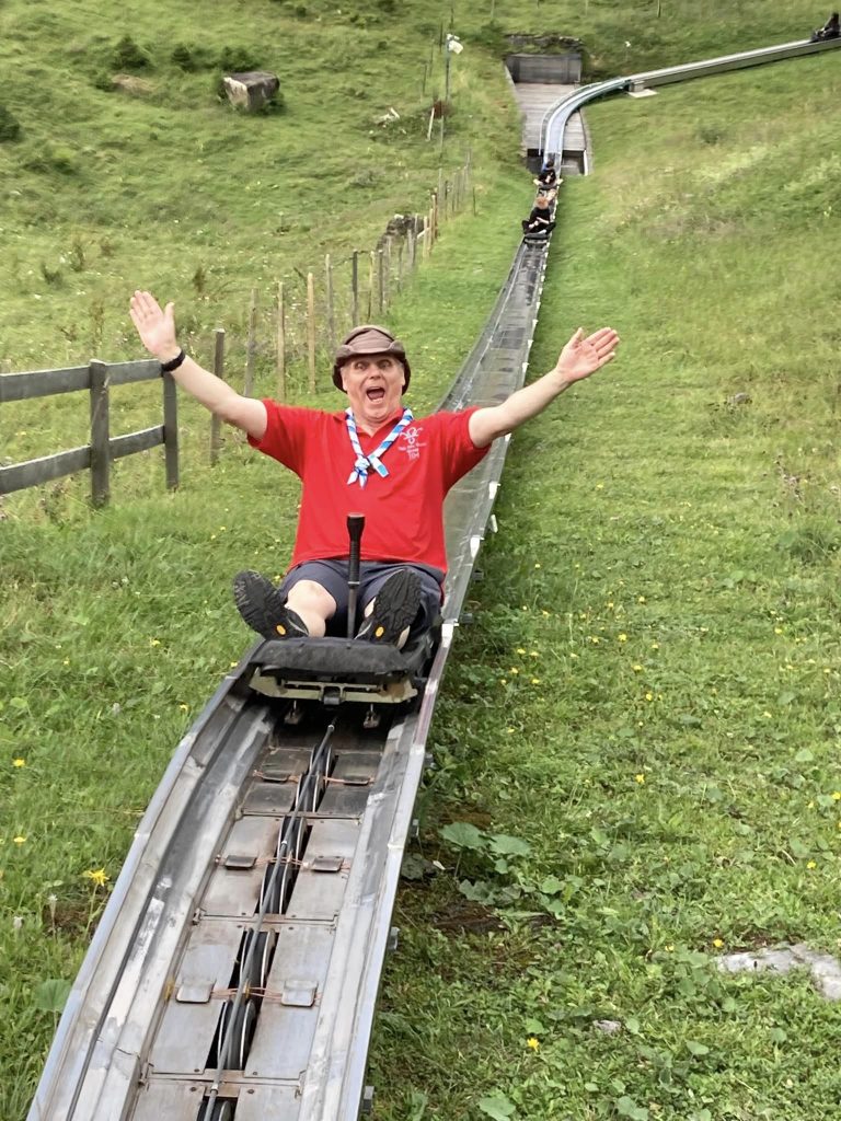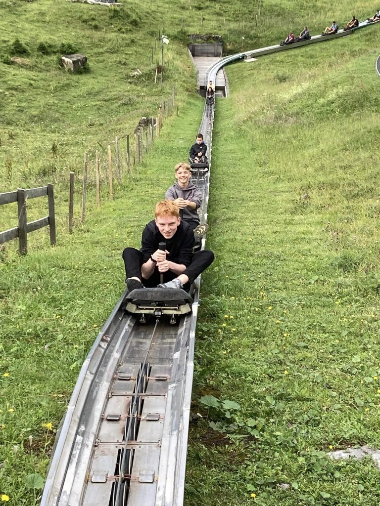 The adventure continued with a thrilling cable car ride up into the mountains surrounding Kandersteg. The panoramic views were spectacular, offering the scouts a bird’s-eye view of the valleys below. For some, the ride was a challenge, but the encouragement of friends helped them conquer any fears. Once at the summit, the excitement only grew with the Rodelbahn, an exhilarating alpine toboggan run. The scouts raced down the track, laughing and cheering, many returning for multiple rides. The sense of freedom and fun was a highlight for everyone.