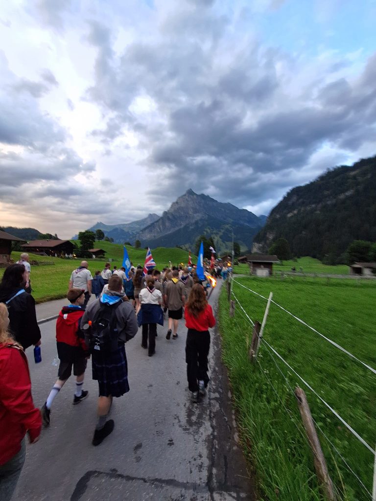 A particularly special moment was participating in the 1st of August parade, celebrating Swiss National Day. The scouts proudly marched through Kandersteg, waving flags and singing songs alongside their international counterparts. The parade ended with a traditional Swiss celebration, complete with fireworks and festivities that lit up the alpine sky. It was an unforgettable experience that underscored the unity of the scouting movement.